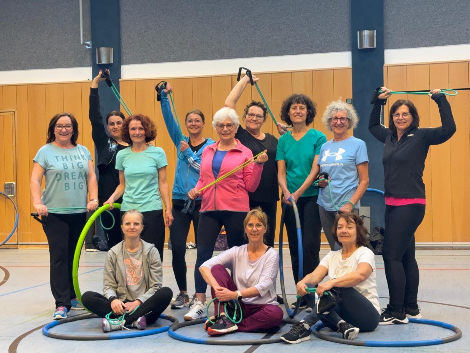Unsere Trainerin Ulrike Jessberger ist ständig bemüht, die Fitness zu steigern. Rund 20 Frauen folgen ihren Befehlen zu neuester Musik. Als “Foltergeräte” stehen uns Stepper, Hanteln, Gummibänder und Matten zur Verfügung.